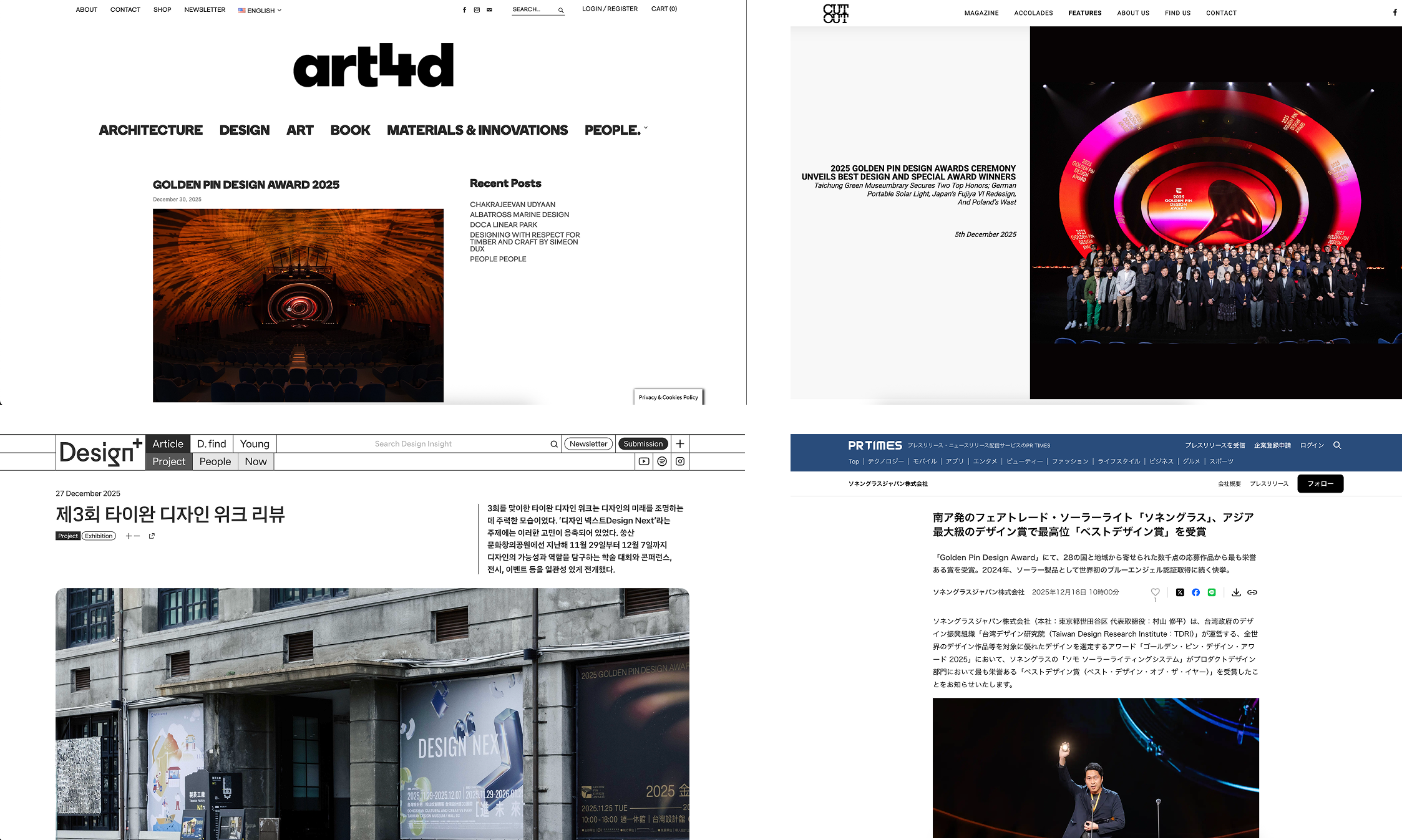 Each year, the Golden Pin Design Award collaborates with numerous prominent Taiwanese and international media outlets as official media partners. Through coverage of award-winning works and interviews with designers, these media partners play a vital role in promoting outstanding designs.