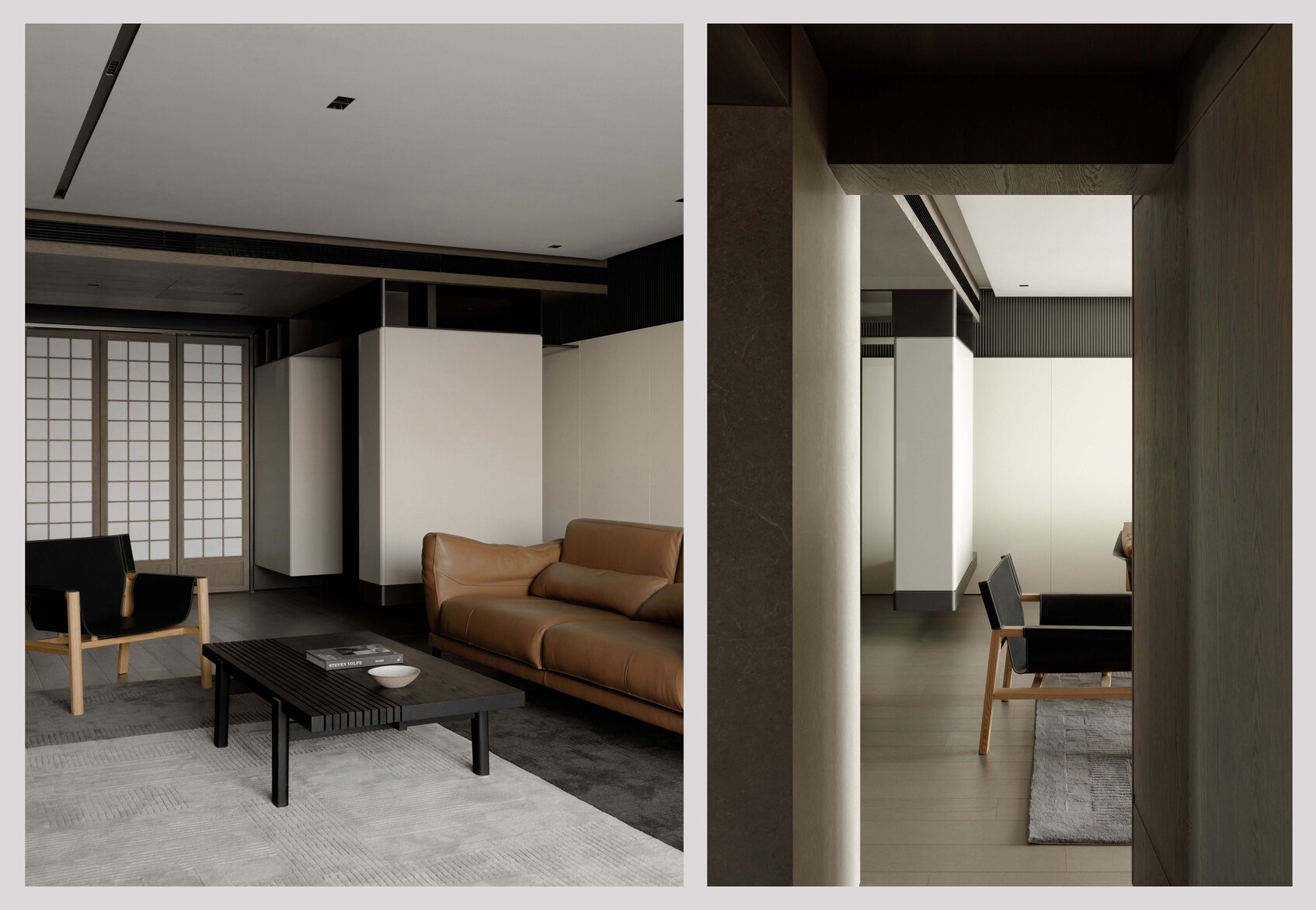 The space is organized north to south in five progressive sections, creating overlapping movement and sight lines. The central passage through public and private areas, like a traditional courtyard, brings order to the initially irregular layout. "The Deep Courtyard" means "deep courtyard" and "how much," reflecting the essence of the space and the anticipation of future beauty in the new home.
